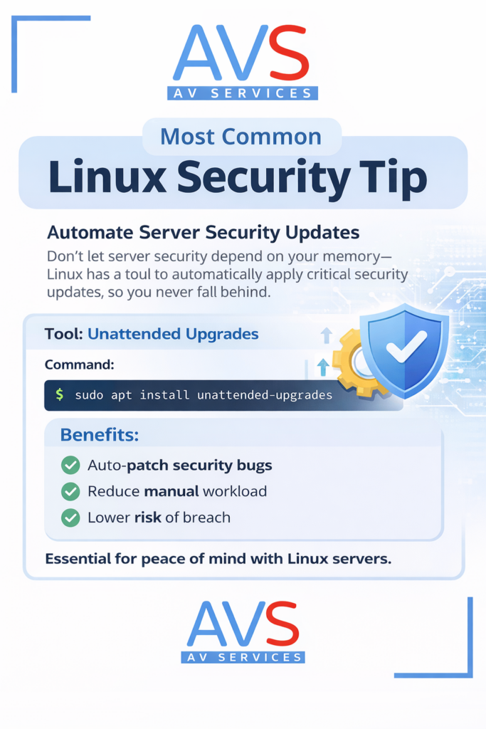 Most Linux server issues don’t happen because of complex exploits. They happen because updates are delayed. Automating security updates using tools like Unattended Upgrades ensures critical patches are applied consistently — without relying on memory or manual effort. A simple configuration step can significantly reduce exposure to vulnerabilities and lower operational risk.
